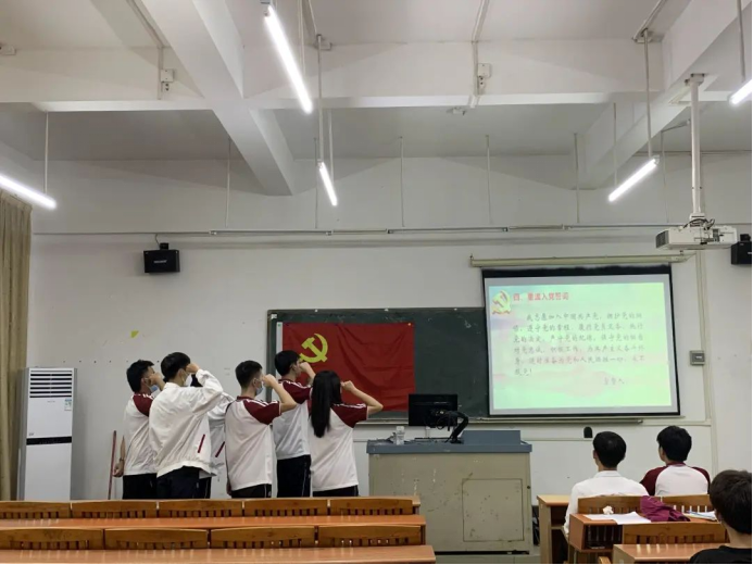 大会第五项为转正党员宣誓。转正党员在徐浩予同志的带领下,进行入党宣誓。面对鲜红的党旗,他们庄严举起右手宣誓,以饱满的激情和铿锵有力的声音表达身为共产党员的自豪感和使命感。