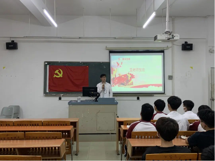 大会第六项为蓝光进老师发言。蓝光进老师首先对按期转为正式党员的同志们表示衷心的祝贺,同时希望党员们把“为人民服务”牢记在心,时刻用党员的标准来要求自己。成为预备党员和正式党员,意味着更大的责任和使命,大家要时刻发挥党员的先锋模范作用,内心坚定“我是共产党员”的信仰,争做一名优秀的中共党员。