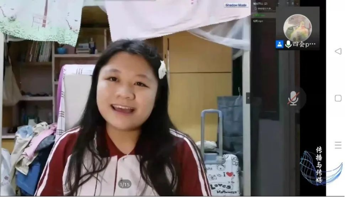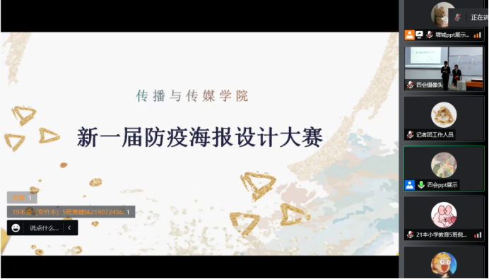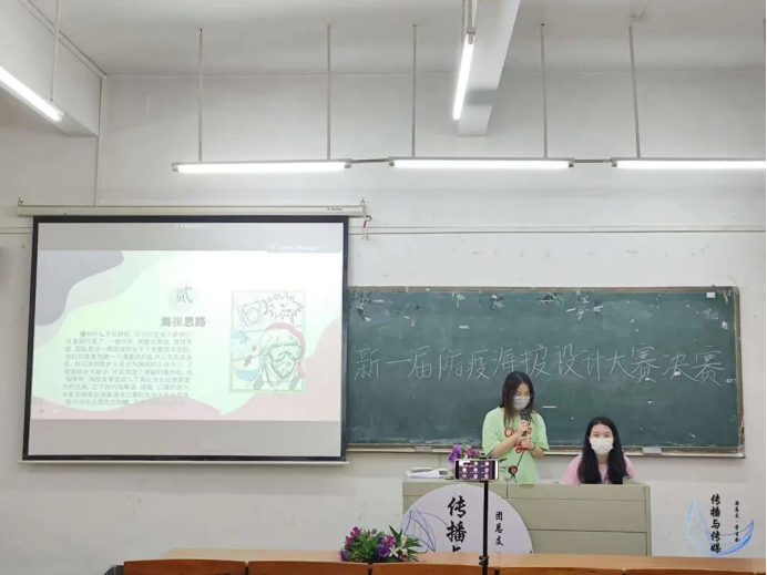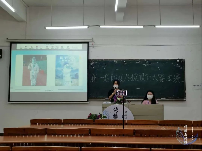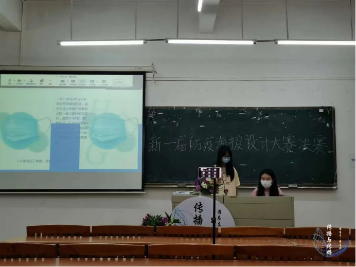 一曲过后,杨伟捷老师对此次活动的最后总结,对同学们防疫海报做出了高度的肯定和赞扬,他提出在当下疫情形势,身为传播与传媒学院的同学们要运用所学的知识来呼吁大家遵守疫情防控工作,齐心协力抗击疫情,为学校防疫工作添砖加瓦。