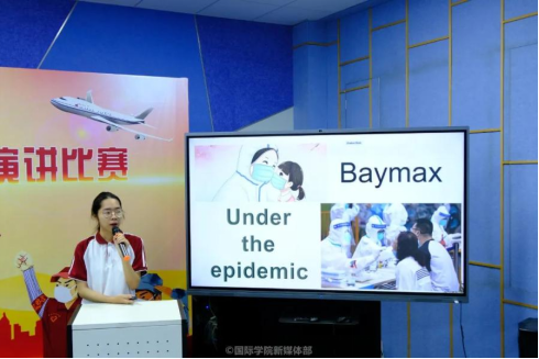 廖凤君同学以“我的城市之光”为主题发表演讲。她用可爱的卡通人物形象“大白”向我们展示了中国抗疫中白衣天使的可爱与负责,她通过城市中温暖的故事向我们传递中国白衣天使内心的热情,让我们感受到从来没有从天而降的英雄,一直都是挺身而出的凡人。