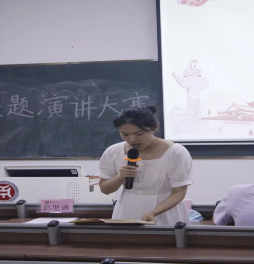 首先,学院党委副书记郭堪通对本次活动致辞,他讲到,今年下半年中国共产党将召开第二十次全国代表大会,这是党和国家政治生活中的一件大事、要事、喜事,举世瞩目,万众期盼。当前,全国上下围绕中共二十大胜利召开凝心聚力,作为当代大学生,我们应积极响应、起而行之,以昂扬的精神风貌和饱满的热情,担当起新时代青年学子的历史使命“一代人有一代人的长征、一代人有一代人的担当”,新时代的青年团员,要在党的引领下,把对祖国血浓于水、于人民同呼吸共命运的情感贯穿学业全过程、融汇在事业追求中,把自己的人生最求同国家富强、名族复兴紧密联合起来,“在青春的赛道上奋力奔跑,争取跑出当代青年的最好成绩”,为实现中华名族伟大复兴的中国梦贡献青春力量。
