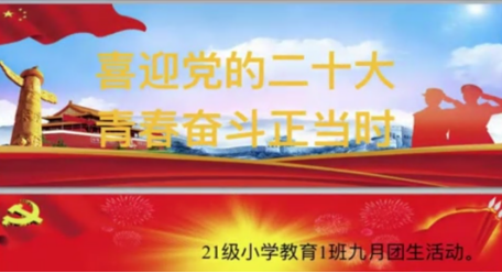 教师教育学院团总支组织部于9月23日在增城校区开展主题为“喜迎党的二十大,青春奋斗正当时”的九月团生总结大会活动。“方欲晓,莫道君行早。踏遍青山人未老,风景这边独好。”八十多年前,毛泽东同志怀着对前路的期待写下不朽的诗篇。如今,中国共产党带领中华民族取得的辉煌成就已经载入史册。喜逢盛世,青年一代站在历史的转折点,正以最昂然的姿态迎接党的二十大的到来,迎接盛世中国的到来。