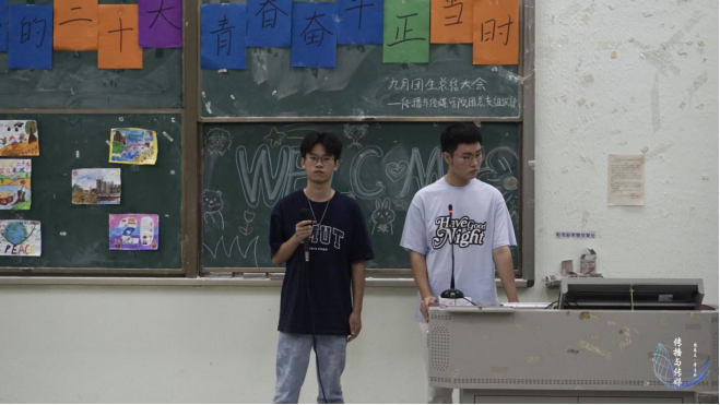 随后,21级新闻学1班的班级代表蔡任栋、潘嘉龙同学为我们带来了歌曲演唱《年少有为》,展现了他们勇于拼搏的班级风采。