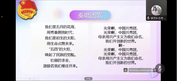 紧接其后,大家共同观看班级团生视频,同学们通过奏唱团歌、有趣的集体游戏、青春洋溢的才艺展示、党史知识竞赛的方式,强化党史学习。