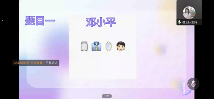 很快,便来到本次活动最有趣的互动环节——承伟人精神,以学之其志。观众需以抢答的方式,在评论区回答出描述该人物的emoji四字词,回答正确的可获得小礼物一份。即便是线上活动,但观众们的热情不减半分,积极地在聊天区发布弹幕进行抢答。