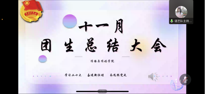 至此,传播与传媒学院举办的十一月团生总结大会圆满结束!新时代的号角已然吹响,吾辈当自强,以小我之心尽大我之力,在祖国崭新的卷册上,书写属于我们的雄伟华章!