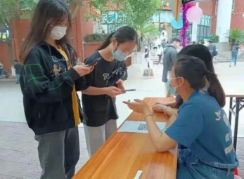 为了让同学们更好地参与本次活动,活动开始前,工作人员早早地布置现场。现场摆摊报名的过程中,工作人员热情地向同学们宣传活动,向有兴趣参加的同学简述本次活动内容并引导他们前往摊点排队报名。与此同时,摊点的工作人员也在认真地给同学们讲解本次活动的细则并指导他们按部就班地填写知识竞赛的问卷。