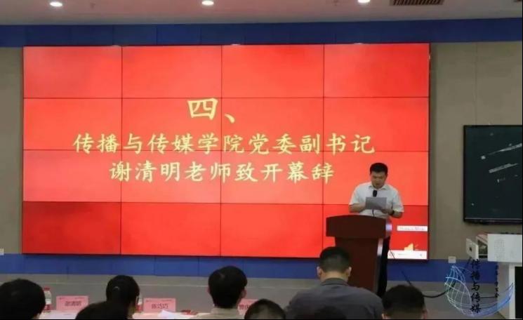出席本次会议的嘉宾有:传播与传媒学院党委副书记谢清明老师、传播与传媒学院团委副书记杨伟捷老师以及传播与传媒学院学生代表。