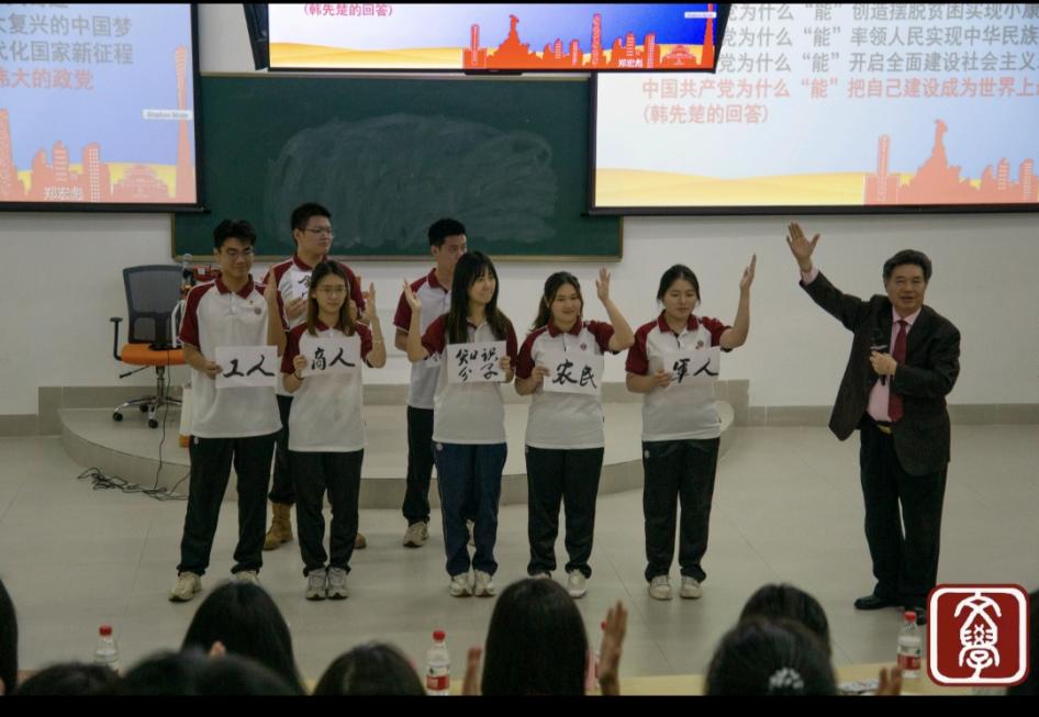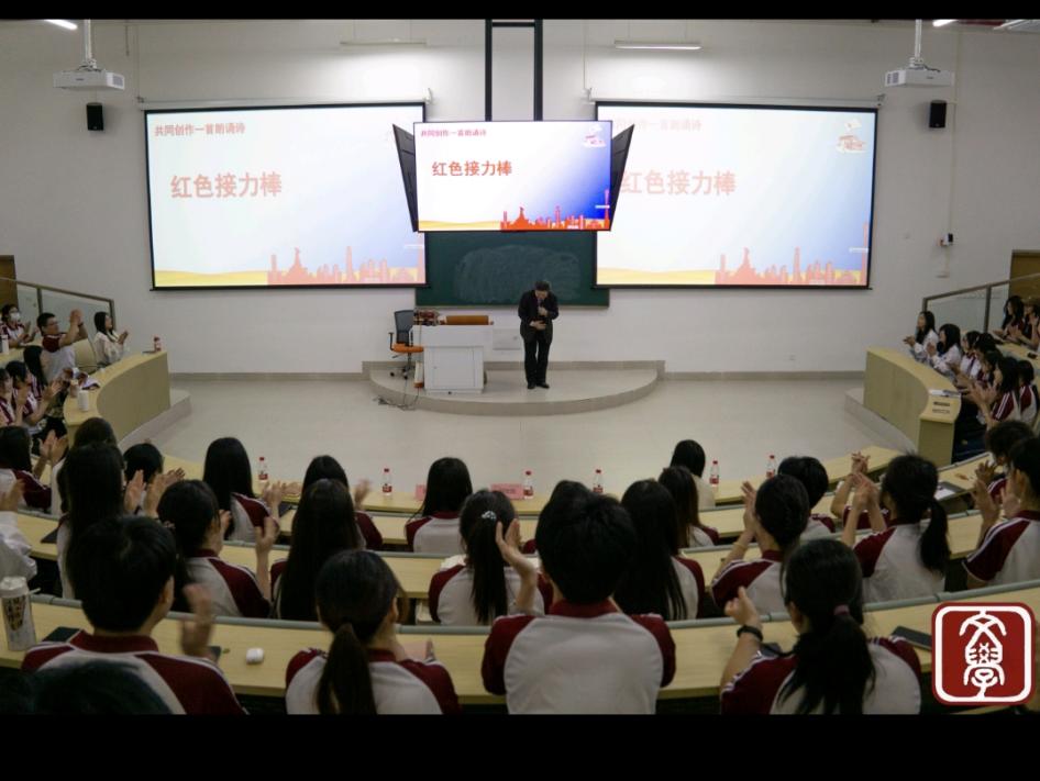 在演讲中,郑宏彪大校分享了自己原创的红色革命诗歌,并深情地为同学们朗诵。他以诗意的语言,深情地表达了对党的信仰与情感,引发了在场老师和同学们的强烈共鸣。除此之外,郑宏彪大校还以游戏的方式让我们体会到党道路选择之正确。现场气氛热烈且融洽,整场活动过程中爆发了五十余次掌声。
