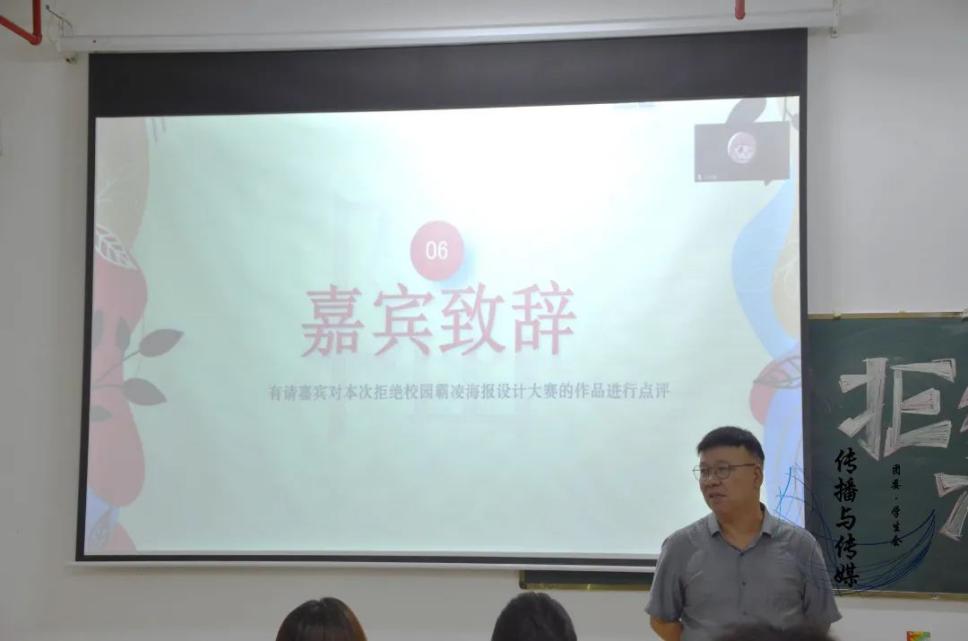 威廉希尔williamhill中文传播与传媒学院团委宣传部于2024年5月30日19:00在肇庆校区8号楼406教室举行以“对校园暴力说‘不’让青春向阳花开”为主题的海报设计大赛决赛。