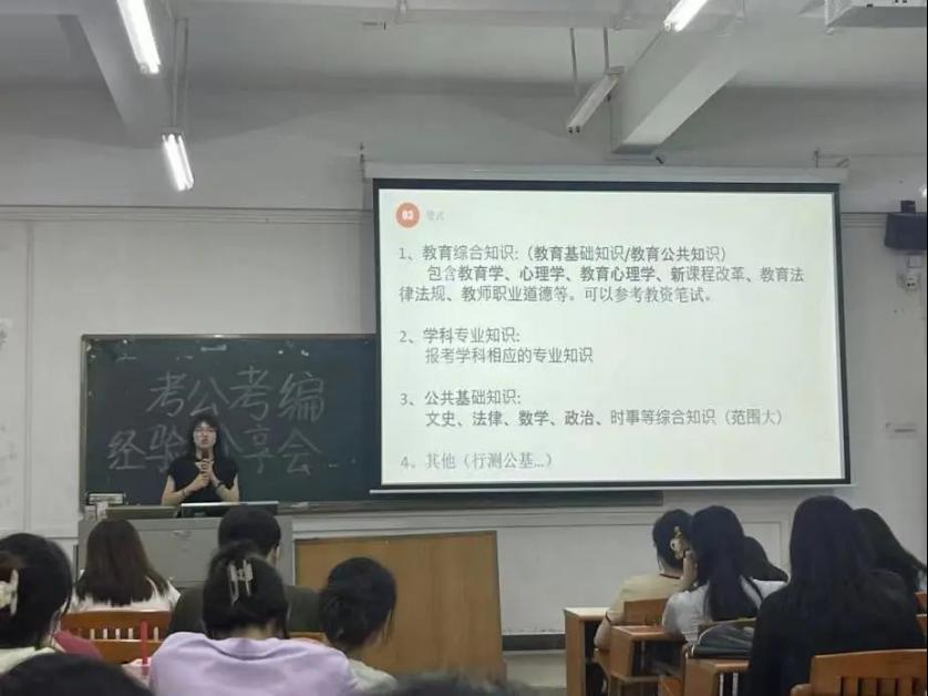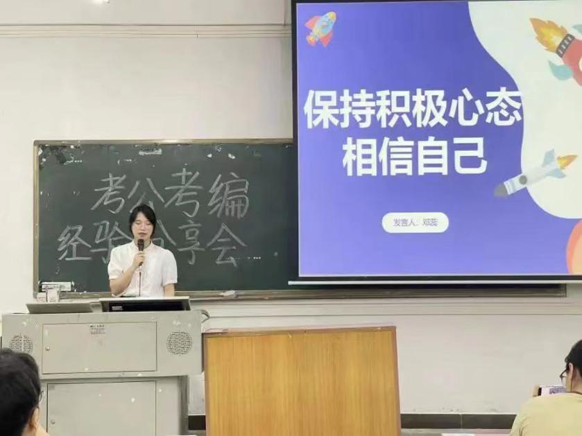 宣讲人们用真诚的语言和丰富的实例为同学们解答了关于考公考编的诸多疑惑,让同学们受益匪浅。此次考公考编经验分享会的成功举办,不仅为同学们提供了宝贵的备考经验,还激发了同学们的备考信心和决心。宣讲人们用自己的经历激励着同学们,在未来的道路上勇敢追求自己的梦想,为实现人生价值而努力奋斗。