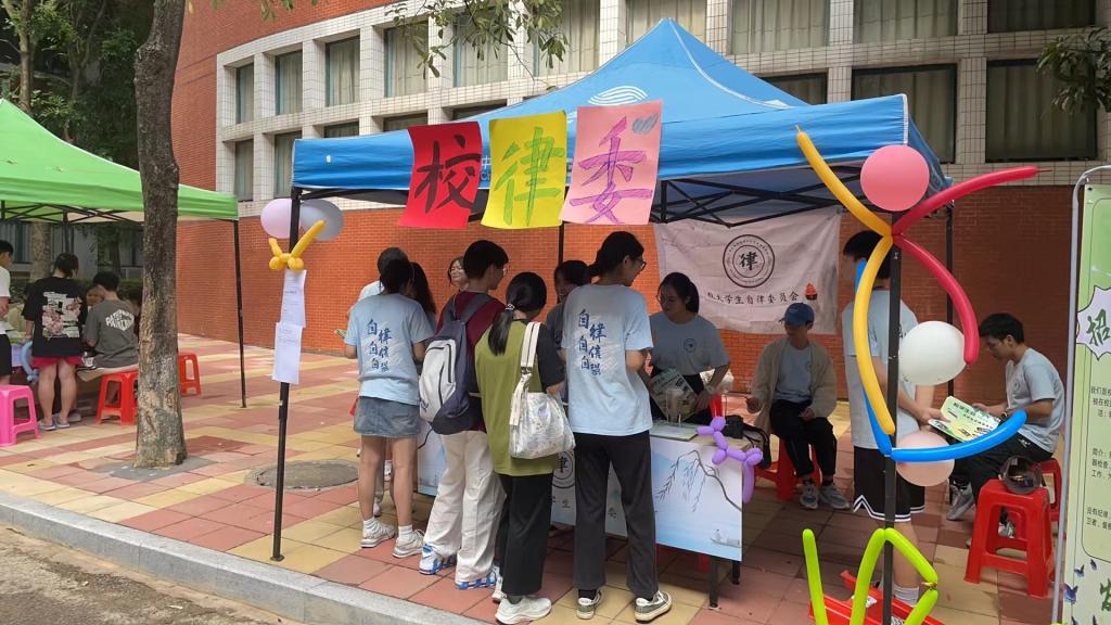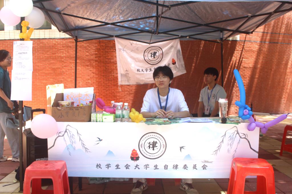 新学期伊始,为了推动校学生会大学生自律委员会的持续发展,我们迫切需要新生力量的加入,以增强组织发展的动力。同时,为了让学弟学妹们更加深入地了解校律委,并且能够找到一个适合自己且喜的部门,特此,校律委在广州校区开展了摆摊招新活动。