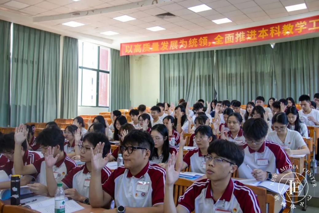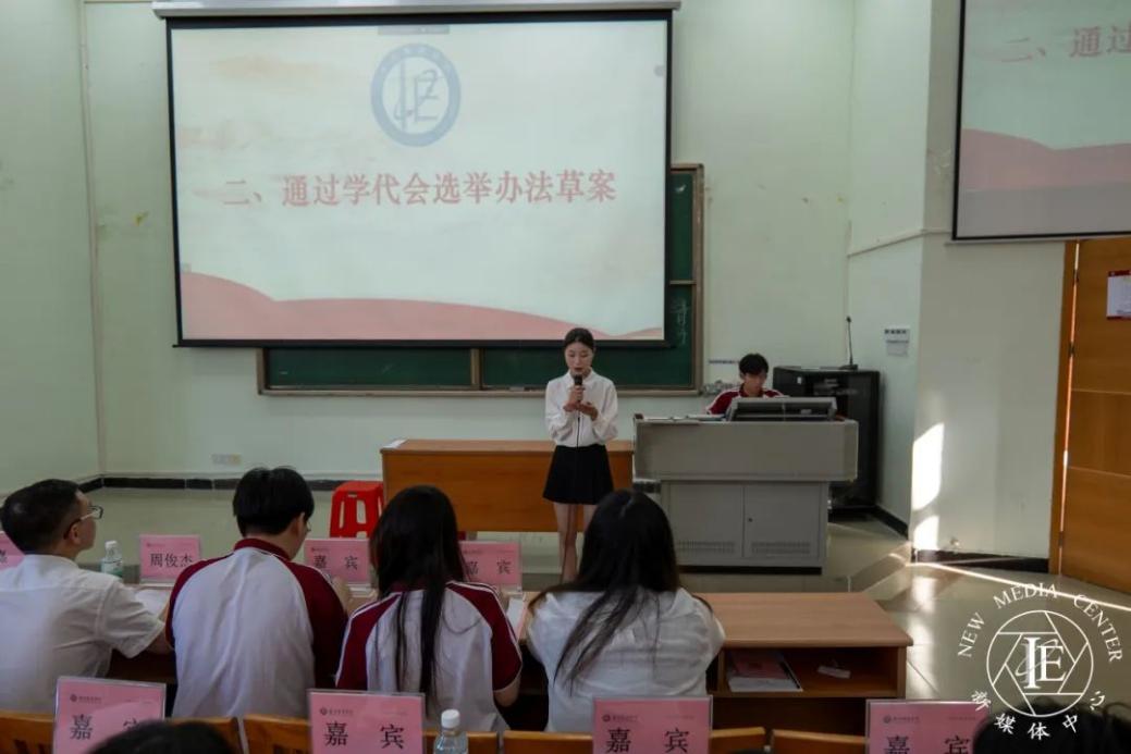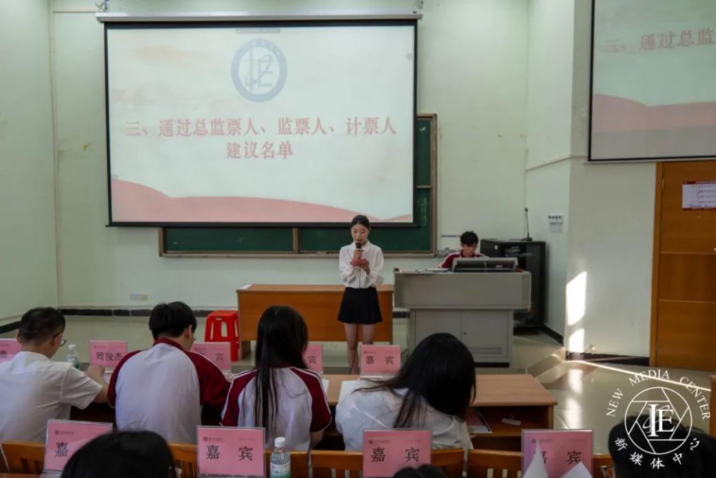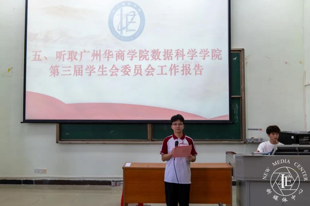 第三届学生会委员会工作报告。陈敬斌师兄代表数据科学学院第三届学生会委员会作工作报告。报告全面总结我院学生会过去一年的工作成果,并明确新形势下我院学生会工作的主要任务,继续紧密团结并引领广大学子,深入学习、积极宣传并全面贯彻党的二十大精神,坚定我们的信仰与理想,不断磨砺专业知识与技能,敢于投身社会实践,呼吁全体同学在新时代的伟大征程中勇敢接过历史的接力棒,为中华民族的伟大复兴贡献青春力量,书写属于我们的辉煌篇章。