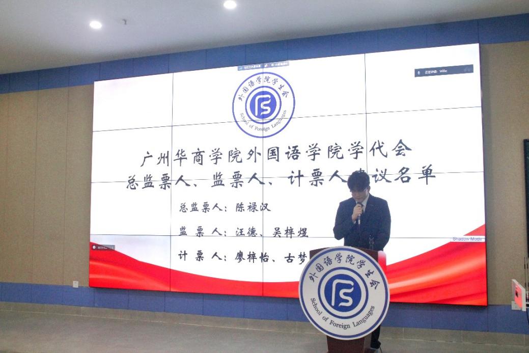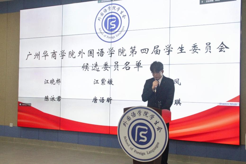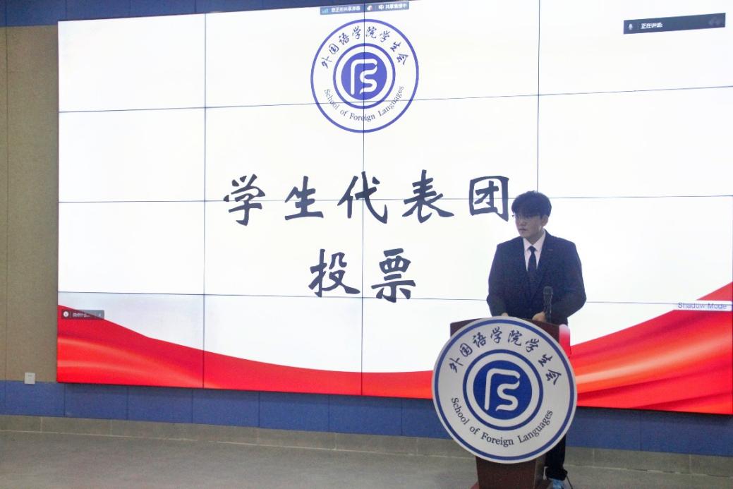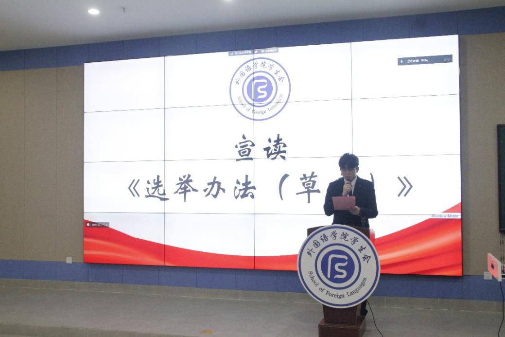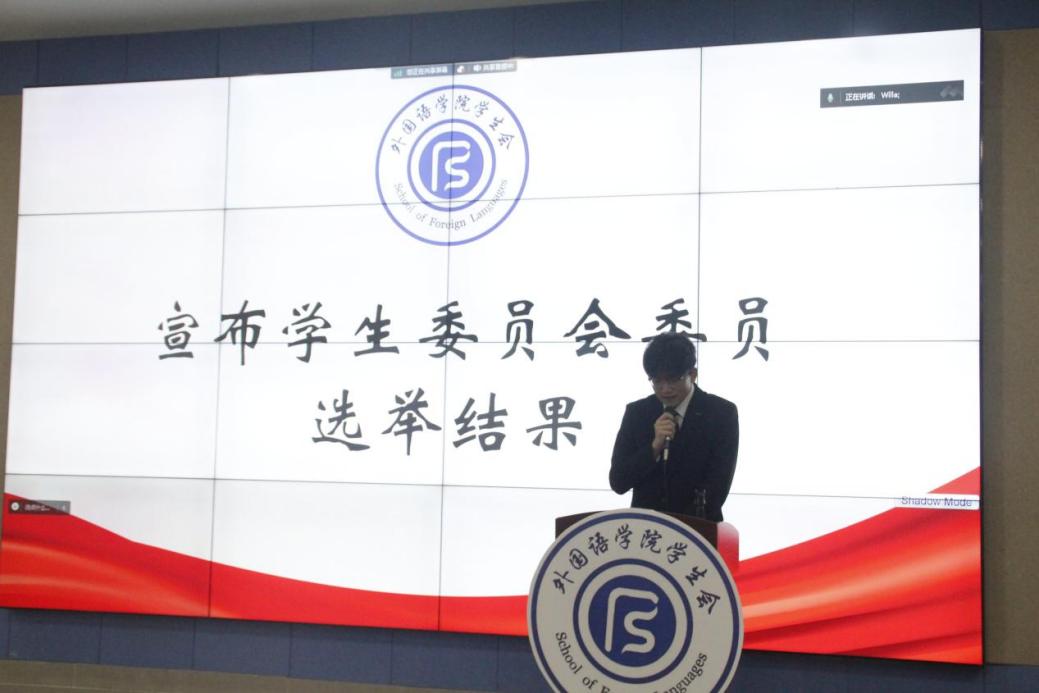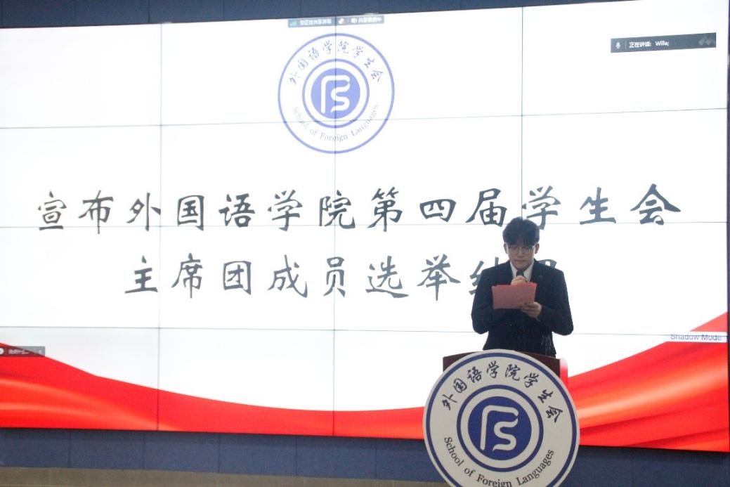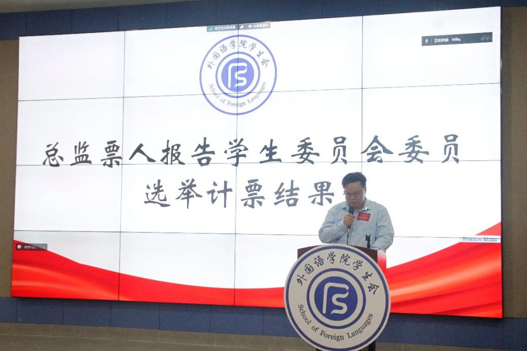 宣布外国语学院第四届学生会主席团成员选举结果。