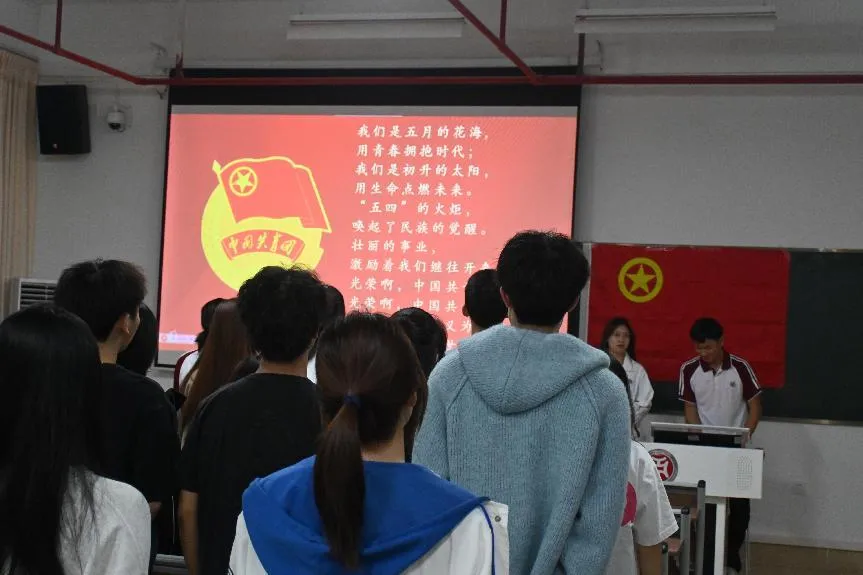 总结大会在庄严的共青团团歌声中拉开序幕,激昂的旋律激发了全场同学的荣誉感与使命感,为后续议程奠定了良好的氛围。