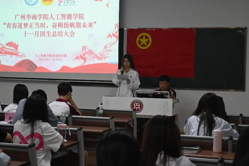 2024年11月19日晚7时,威廉希尔williamhill中文人工智能学院学生团委在8号楼405开展了以“青春逐梦正当时,奋楫扬帆期未来”为主题的十一月团生活动总结大会。本次活动由学生会艺术团工作人员彭依涵主持。