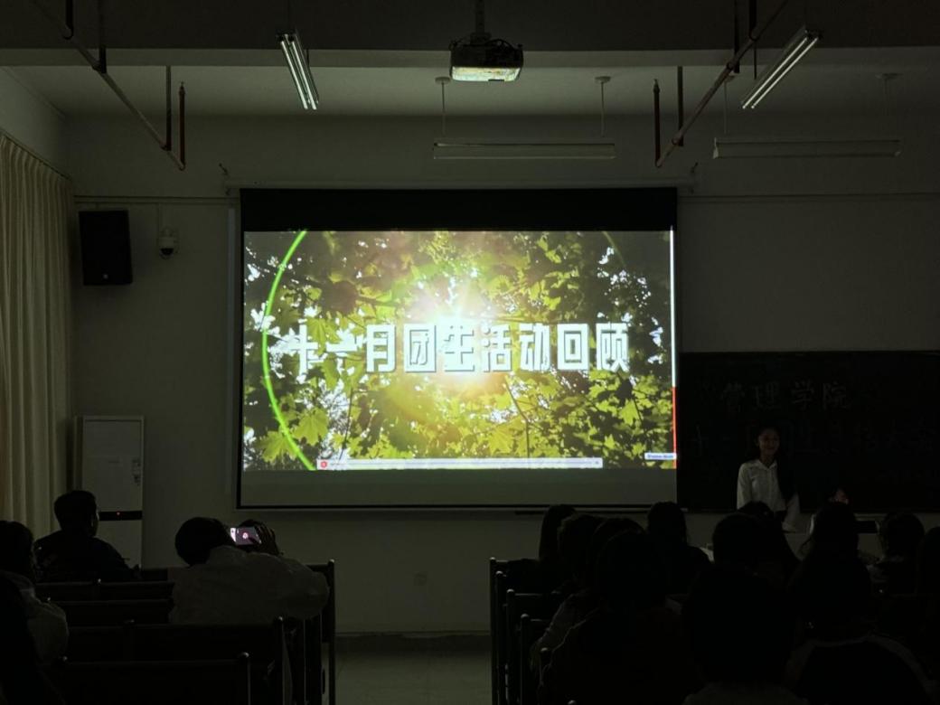 紧接着,大会来到了团生回顾环节,同学们认真观看工作人员播放的团生回顾视频,在愉快的氛围中回顾十一月团生活动的精彩瞬间,现场的氛围瞬间热闹起来。
