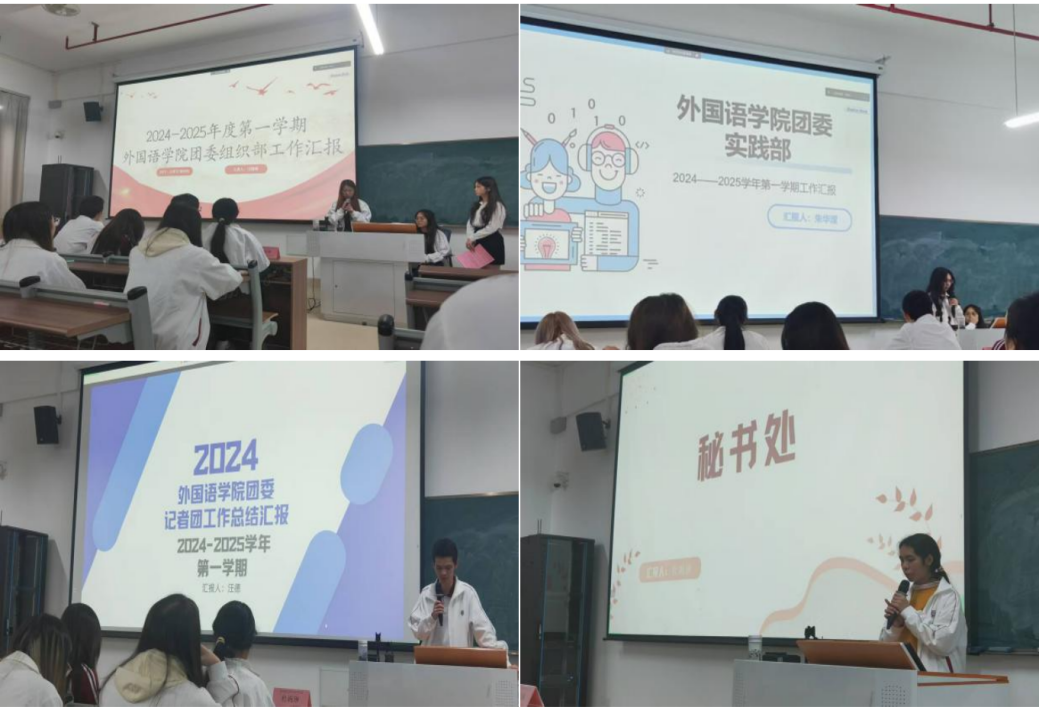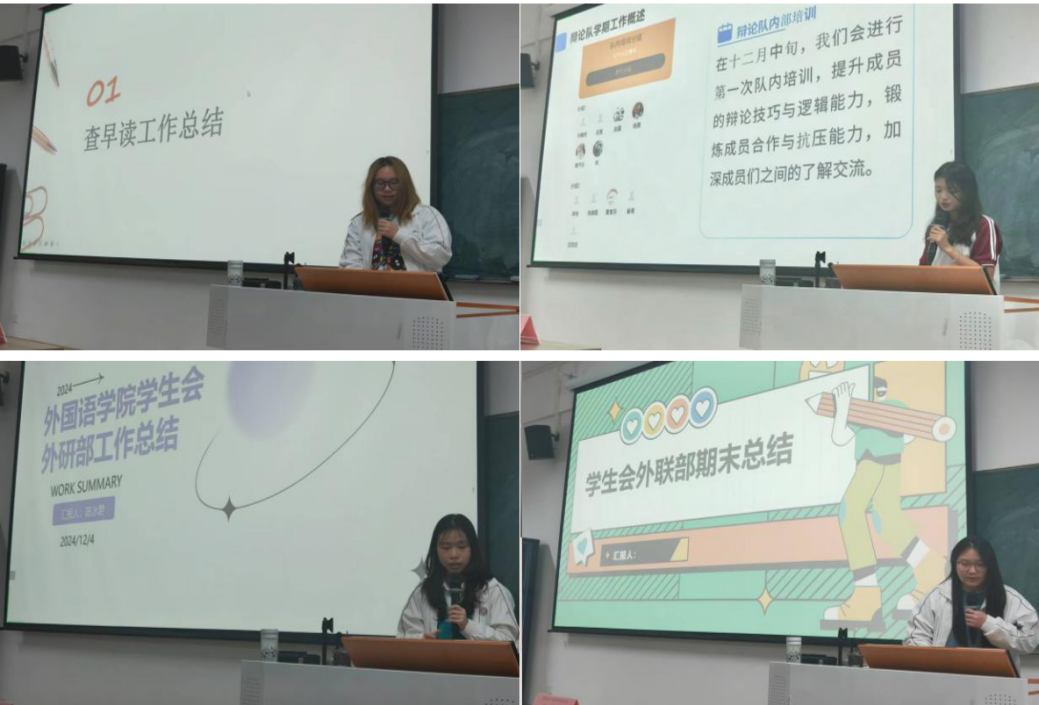 ——外国语学院团委学生兼职副书记汪德师兄发言。师兄对本学期的工作进行了基本的概述与总结,指出工作中存在的不足,希望大家能积极改正。同时,也对新学期的工作提出了展望与目标。
