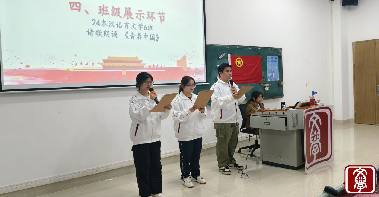 随后,由24本汉语言文学6班的同学带来诗歌朗诵——《青春之歌》。