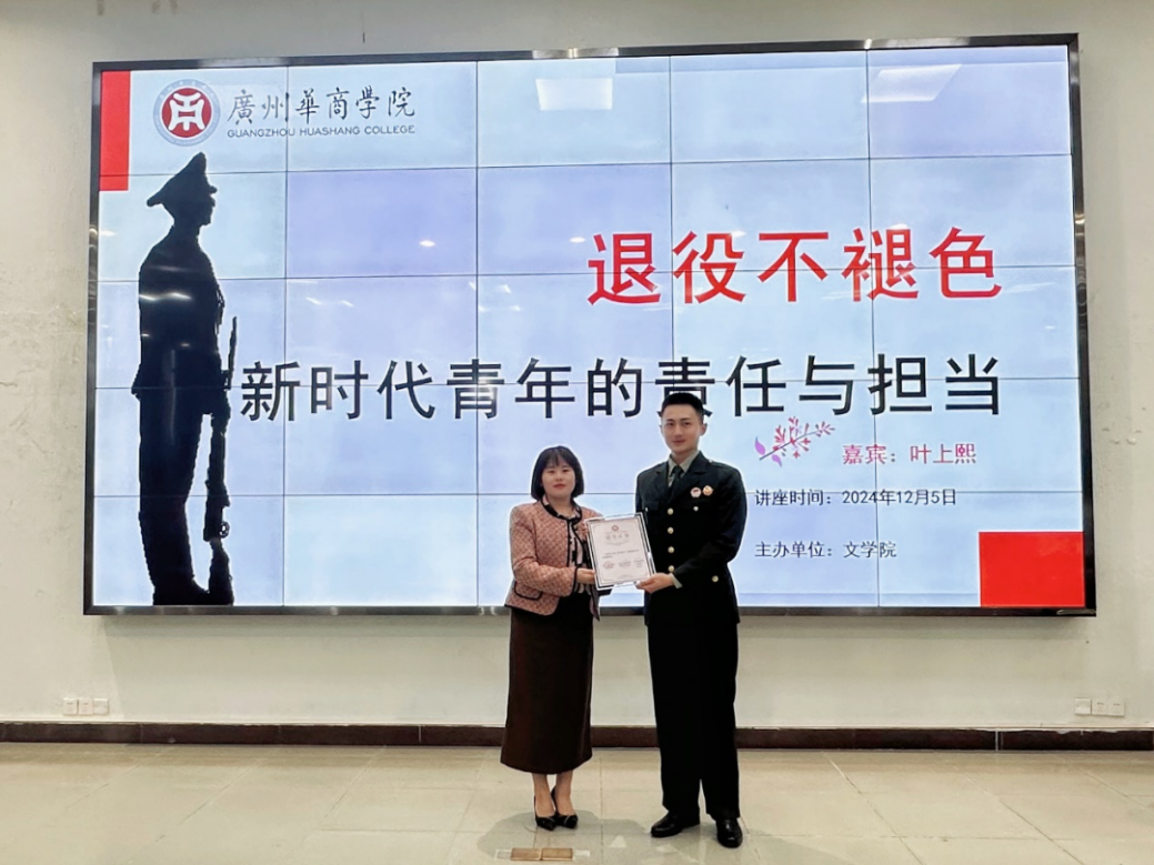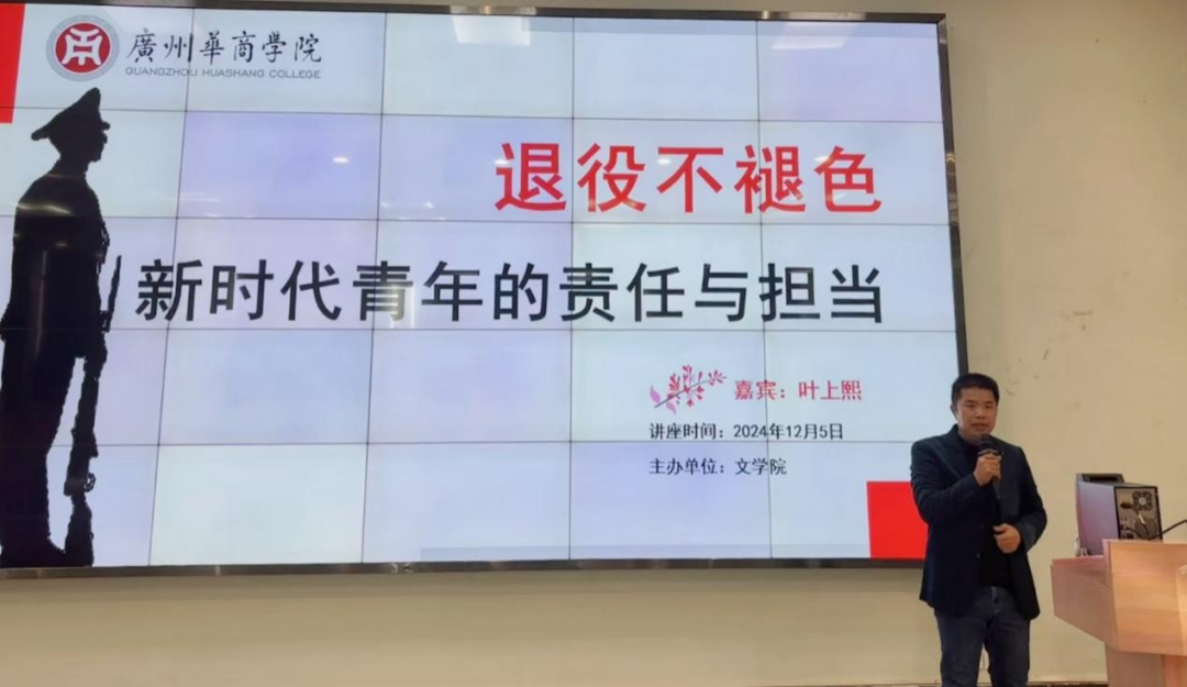 12月5日,广州校区内一场以“退役不褪色—新时代青年的责任与担当”为主题的讲座盛大举行。此次讲座由威廉希尔williamhill中文主办,旨在弘扬退役复学大学生士兵的优秀品质,为广大学子树立榜样。 当日,威廉希尔williamhill中文副校长许娜、学生处处长黄国富、威廉希尔williamhill中文党委副书记郭堪通、学校武装部老师郭锦荣、威廉希尔williamhill中文学工办副主任王桂华等领导嘉宾出席,现场 180 多名学生齐聚一堂,共同聆听这场意义非凡的讲座。