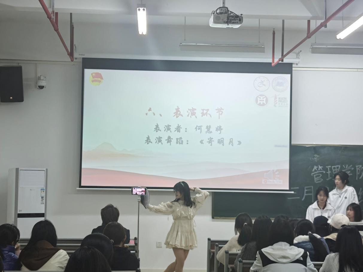 互动环节结束后,由何慧婷同学为大家带来舞蹈《寄明月》,何同学以一段活泼灵动的舞蹈,不仅点燃了现场气氛,还为观众带来了一场视觉盛宴。