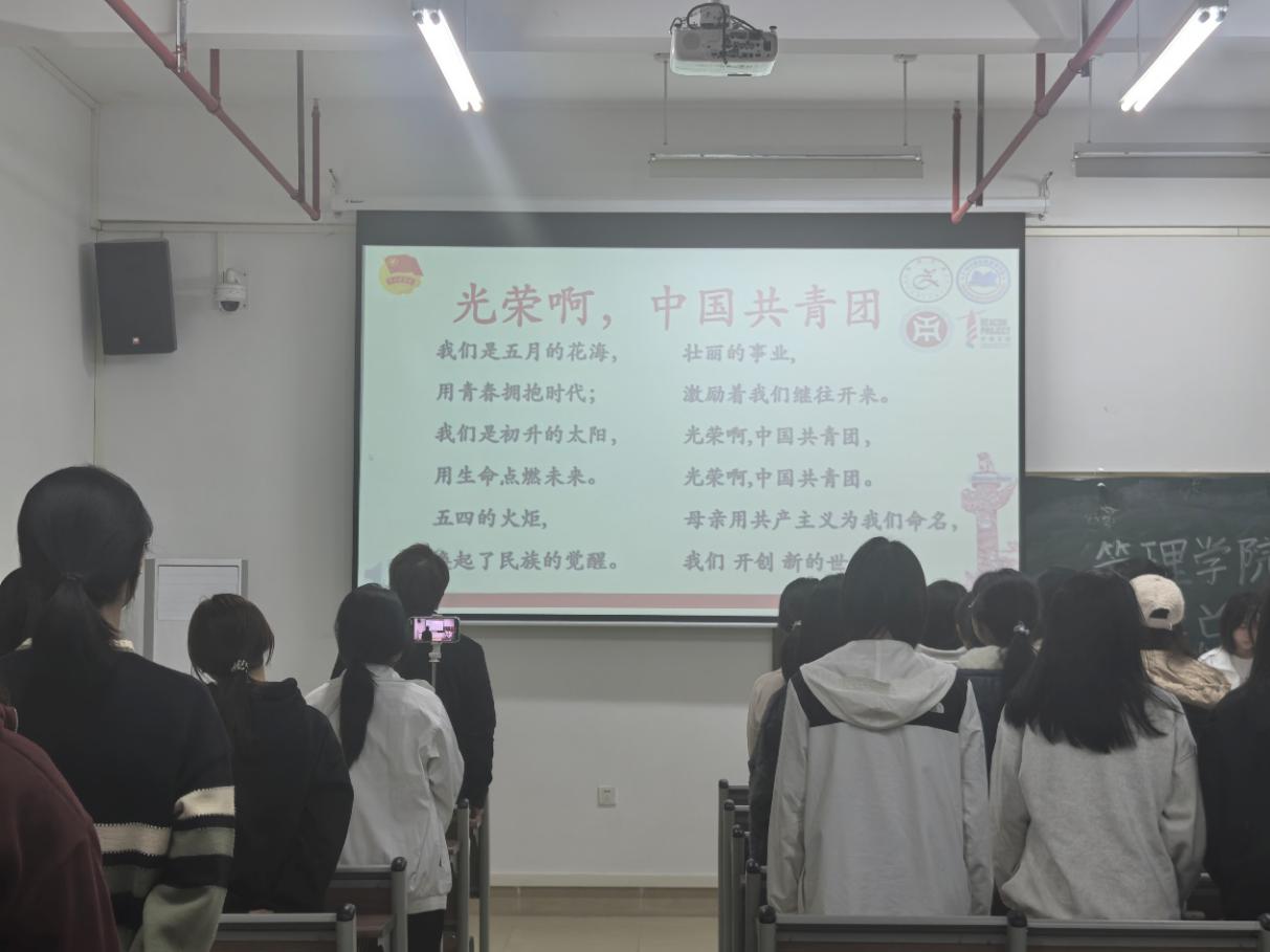 管理学院团委于3月18日晚上7时,在肇庆校区8号楼401教室举办主题为“传承雷锋精神,弘扬志愿新风”三月团组织生活总结大会,广州校区采用线上直播的形式同时举行。