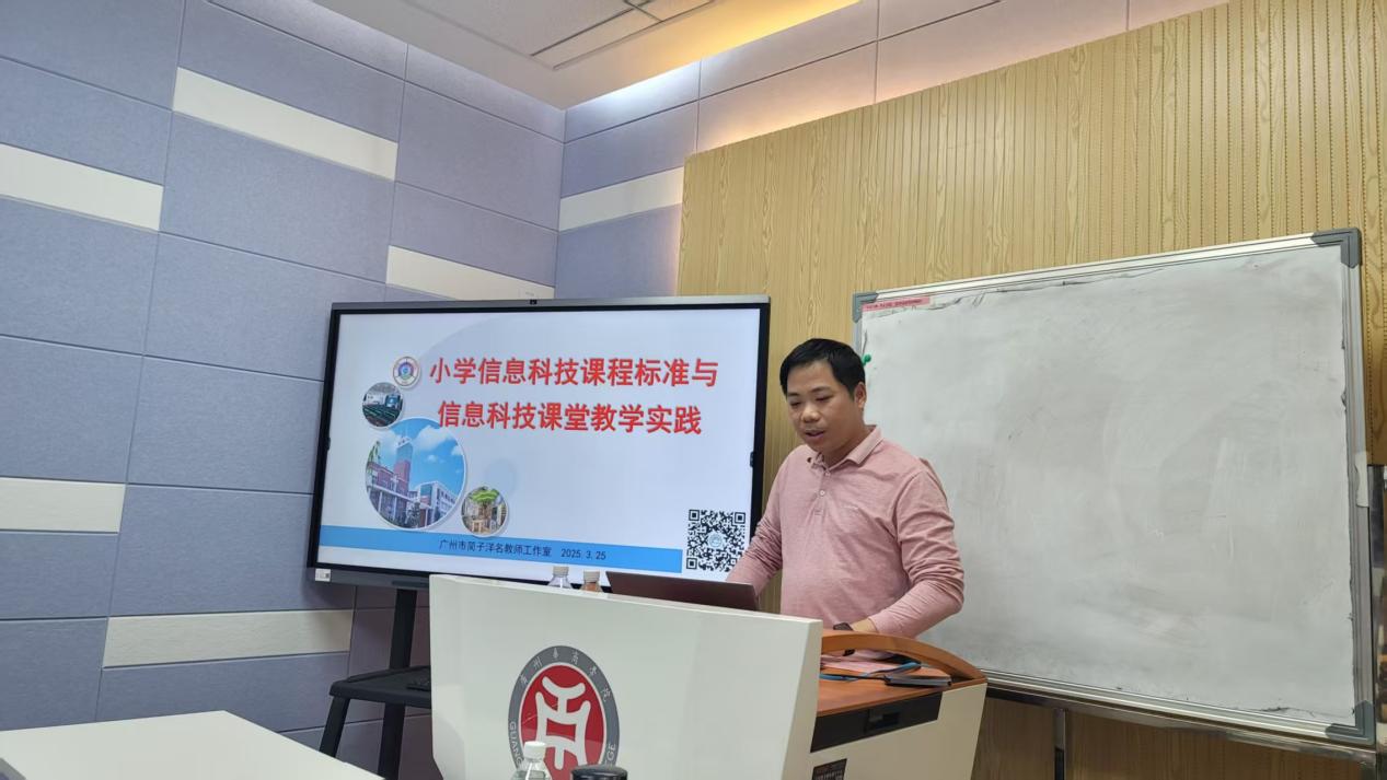 接下来,简子洋老师进行主题报告。报告中,简老师深入剖析了小学信息科技课程的发展历程和重大变革,从课程方案到信息科技课标组的成立,再到教学指南的编写,强调了课程理念的转变和对教学实践的影响。他指出,信息科技课程从综合性地方课程上升为国家课程,课程名称从信息技术变为信息科技,教学内容从以技术操作为主转向科学原理的学习,这些变化给教师和学生都带来了新的挑战和机遇。