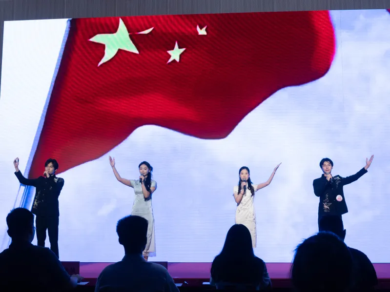 作为惊喜节目,校华商之声广播电视台集体朗诵《新征程,新一步》震撼登场。深情话语化作奋进的鼓点,激荡人心。