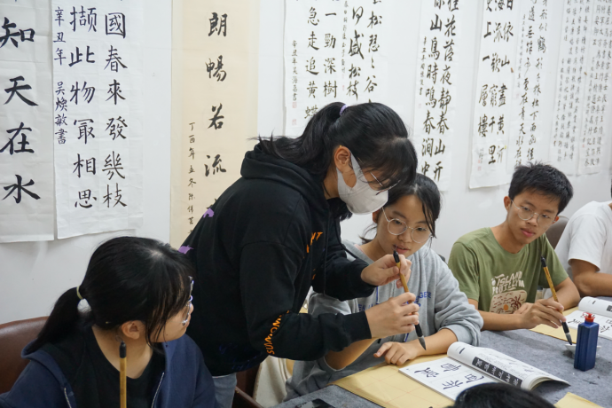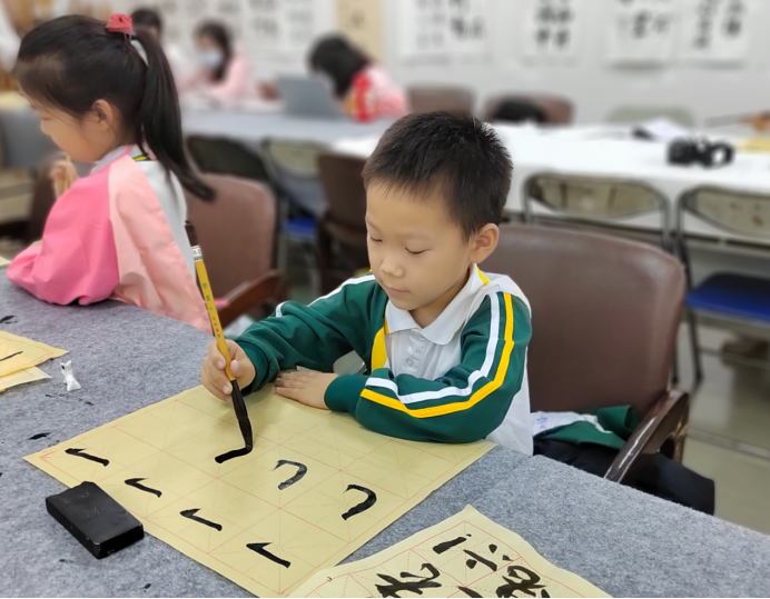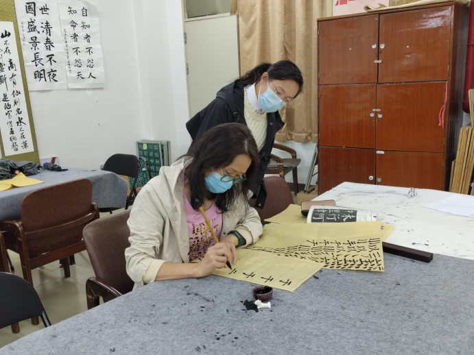 10月26日—11月19日,每周三、周六,我校书画协会在厚德楼C105为广大教职工及其子女开展公益教学活动。公益教学活动是书画协会每年定期开展的活动,不仅为教职工及其子女提供练习场地和书法工具,还有社团成员送上独家指导。活动现场,大小学员们一笔一划认真书写,沉浸于书法的魅力当中。社团成员们认真教学,不时走动停下脚步纠正学员们的握笔方式、书写方式,检查学员们的练习进度。学员们从学习中提升文化素质和对书法艺术的爱好,提升审美意识,陶冶情操;“老师们”通过公益课教学提升专业能力、与人沟通能力,营造浓厚校园书香氛围。