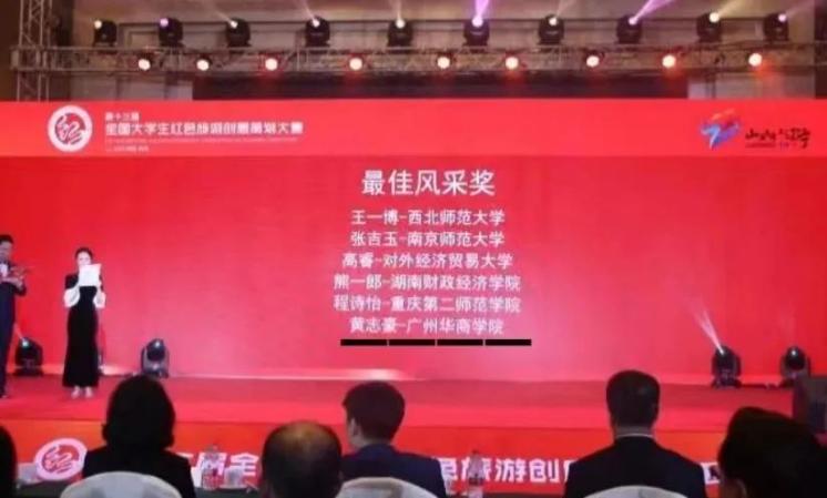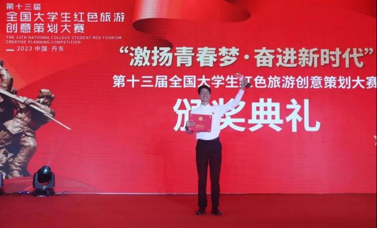 10月18日至21日,由文化和旅游部资源开发司联合辽宁省文化和旅游厅、丹东市人民政府、北京第二外国语学院共同举办,以“激扬青春梦 奋进新时代”为主题,聚焦新时代,以培育时代新人为目标的第十三届全国大学生红色旅游创意策划大赛全国总决赛在辽宁省丹东市举行。经过近半年的激烈角逐,在旅游协会指导老师张丽娟和廖珍杰的精心指导下,由旅游协会李怡萱、成雯福、黄志豪、罗银仪、赵垲雄同学积极参与的“红摄先锋队”团队于2023年5月在参加红色足迹微视频类别赛荣获华南赛区特等奖(全国前20名),于2023年9月通过全国总决赛(线上环节)杀入本类别赛全国前10名,荣获全国二等奖(全国前五)。我校为华南赛区(广东、广西、海南)高校入围“红色足迹微视频”全国总决赛唯一一所广东省高校。最终,该团队荣获本赛道全国总决赛二等奖。其中,来自旅游协会的黄志豪同学荣获本届红旅大赛全国总决赛的最佳风采奖。