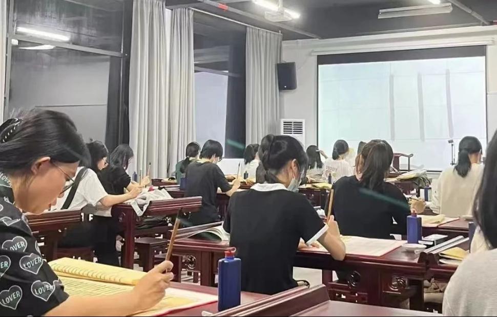 ——日常教学。为进一步宣扬书画艺术,弘扬书画之美,书画协会在广州校区和肇庆校区均有开设硬笔和软笔课程,配备专门的书画室供成员们练习,且有教学部的小老师们亲自教学,一一指导。互动式的教学,让成员们更能心领神会,抓住要点,不断取得进步。