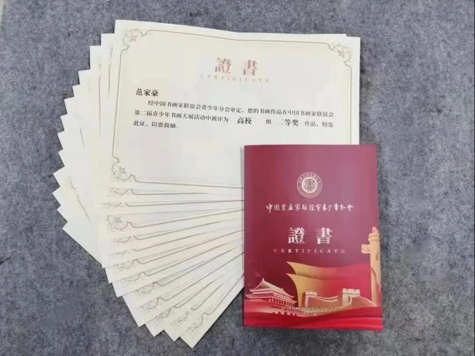(中国书画家联谊会第二届青少年书画大展活动中荣获高校组“二等奖”)