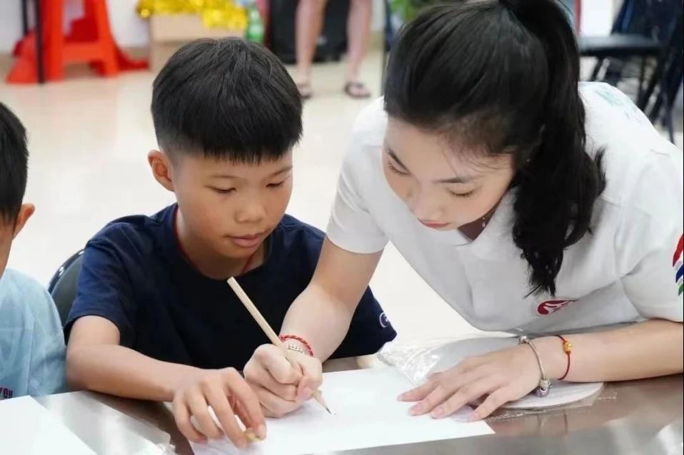 为深入开展学习贯彻威廉希尔williamhill中文新时代中国特色社会主义思想主题教育,贯彻落实党的二十大精神和威廉希尔williamhill中文总书记关于青年工作的重要论述,由书画协会组织的薪传启梦实践队立足“以美养德、以德育魂”的大美育观,构建起课堂、活动、空间、环境四位一体的美育课程体系,为孩子们搭建一个展示艺术风采的舞台。在书法课上,实践队员激发同学们对书法的兴趣,培养其对汉字的热爱,带领同学们感受书法的独有魅力,小朋友们提笔蘸墨,陶醉在书法艺术的一笔一划中。
