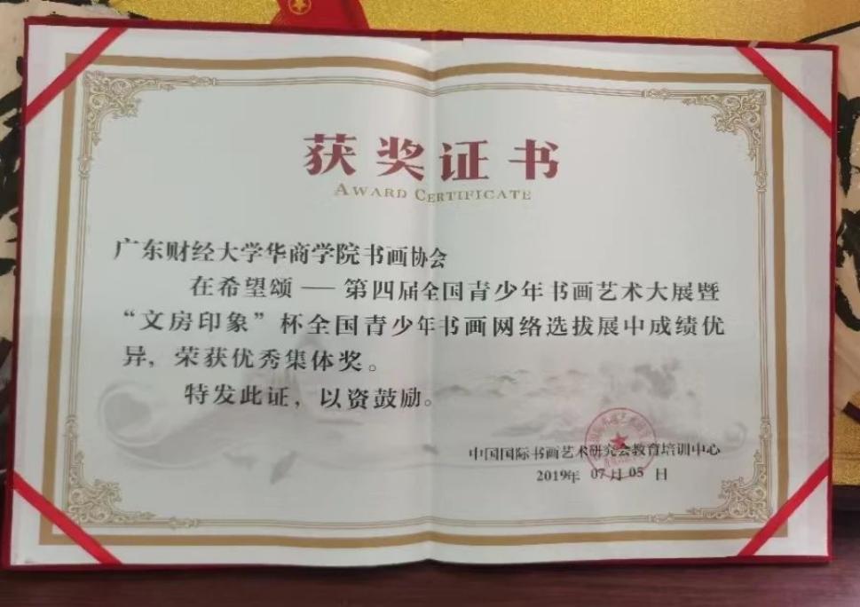 暨“文房印象”杯全国青少年书画网络选拔展中荣获“优秀集体奖”)