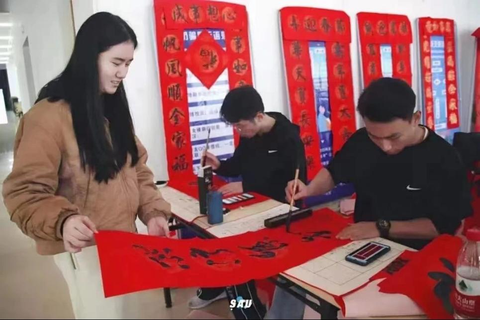 ①挥春送福活动。为回馈我校教职工及青年学生,营造浓厚的校园文化氛围,书画协会特地举办“挥春送福”活动。活动现场翰墨飘香、人头攒动,师生们纷纷驻足观看参与。书协成员们挥毫泼墨,大展身手。一幅幅妙意春联,为人们送去了最真挚的祝福。师生们嘴角绽开的笑容,寓意着“福气”的到来。