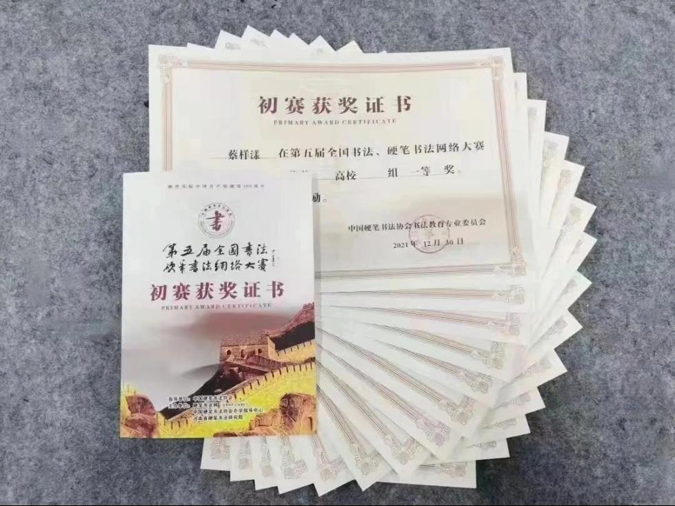 (第五届全国书法、硬笔书法网络大赛中荣获高校组“一等奖”)