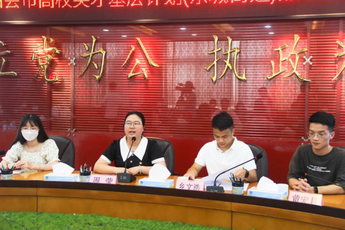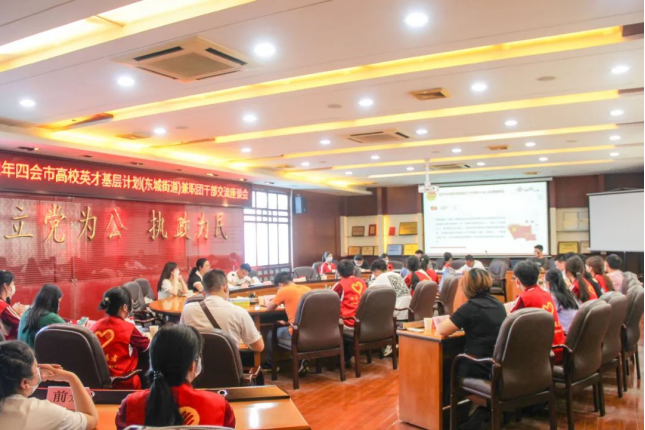 2022年四会市高校英才基层计划兼职团干部交流座谈会(东城街道站)顺利进行。座谈会由东城街道团工委书记乡文浩主持。