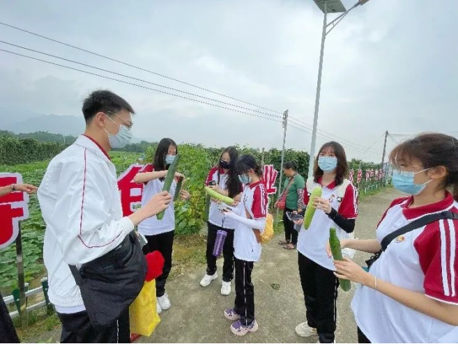 在洞心村团支部负责人的热心带领下,华商青年基层服务实践队参观了罗源镇乡村振兴示范基地“共享菜园”,了解菜园的运作模式和种植品种等信息。当地居民的热情招待,体验采摘瓜果田园乐趣,兼职团干们真切感受到乡村振兴的“幸福甜味”以及基层工作者用心助农帮扶。