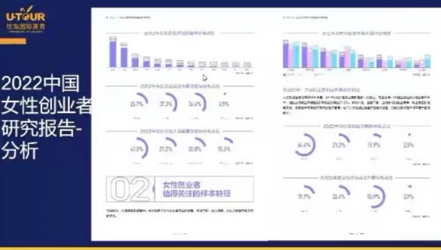 讲座伊始,老师对2022年中国女性创业者的研究报告进行了相应的分析和解读。简洁地对女性创业情况进行了概括。