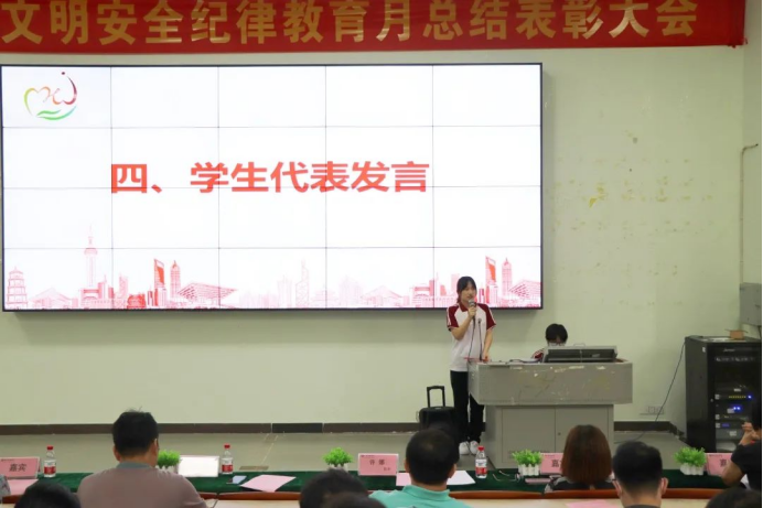 第四项议程为学生代表发言。校学生会心理健康总站负责人邹佳萱同学表示,在领导、老师的指导下,校学生会心理健康总站承办了多项线上和线下的活动,积极为学校的心理健康工作奉献青春力量。在工作中,我们时刻秉持为全校学生服务的宗旨,积极办好每一项活动;在学业上,我们努力踏实,认真学习。