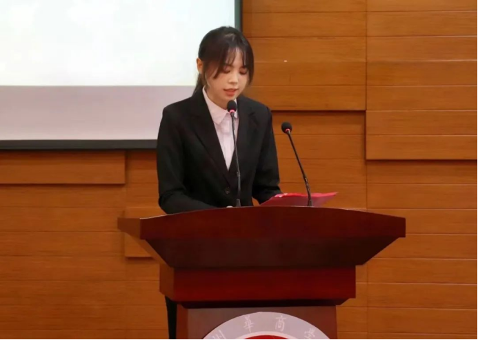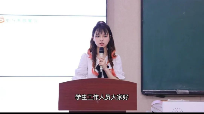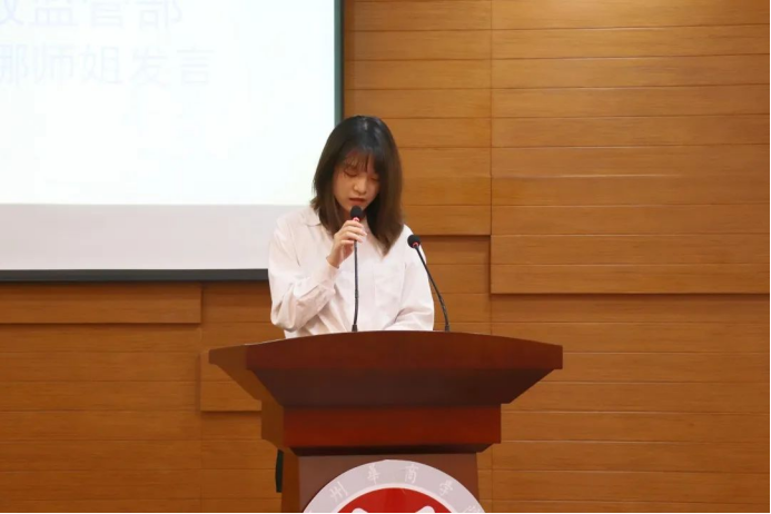 四会校区负责人代表发言龙洁慧表示与同伴相互配合下顺利完成本学期的工作。她表示,自身工作仍存在不足,但努力寻找解决方法来提高工作质量。通过这学期的工作她与行政监管部的缘分更加紧密也和部门小伙伴更加熟悉,在他们身上学习到了自己不足的地方,思想政治理论微视频大赛离不开每一位工作人员的努力,也对部门的师兄师姐的教导表示衷心的感谢。