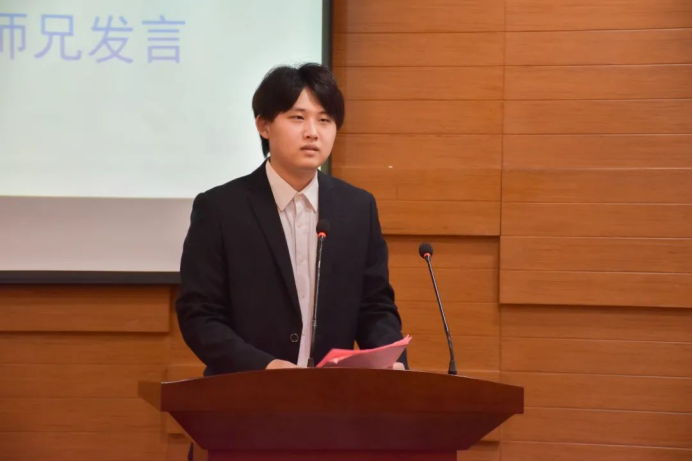 郑焕坚代表表示自己在大一的一年满怀热情进入人文素质部,在人文成长这个过程中得到了部长的教诲与指导,也认识了部门许多的朋友表示十分的高兴。同时也对教导他的同学表示感谢,从懵懂的小干到了现在的组长,收获了许多也懂得了许多,也正因为他们他如今也能够独当一面。