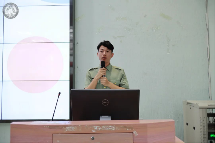 第八环节为优秀退伍学生事迹分享。21届毕业生黄煜峰与我们分享了他入伍的初衷、经历、体会等方面,并提醒有入伍意向的同学体检前要保持良好心态,入伍后在部队里要把握好机会,无论是在部队还是学校,我们应保持自律意识,充实自己、提升自己。