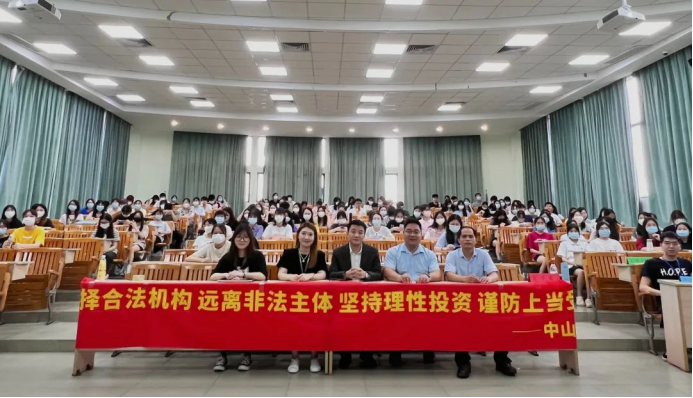 为增强学生金融防范意识,提高学生的金融知识水平,加强学生防范非法证券期货活动和防诈骗意识,我校于6月14日在励志楼A408邀请了中山证券公司的人员为同学们开展普及金融知识,增强金融反诈及风险防范能力主题讲座,本次讲座嘉宾为学生处副处长黄国富,人文学部副主任、外国语学院副院长陈少鸿主任,中山证券经纪业务管理总部、衍生品业务负责人吴晓鸿,中山证券经纪业务管理总部经理吴茵、方思思等。
