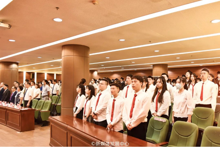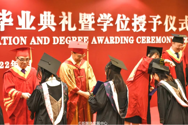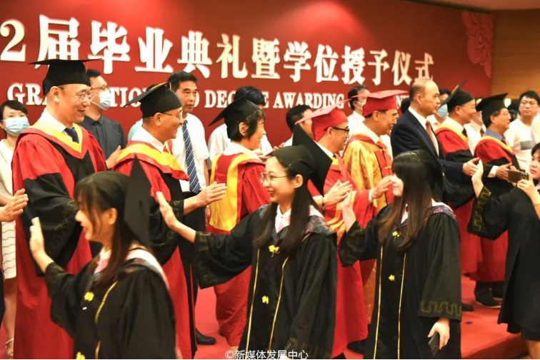 典礼第十项为为2022届毕业生代表授予学位。骊歌唱响,拨穗礼成。时间是让人猝不及防的东西,愿此去繁花似锦,再相逢依旧如故。
