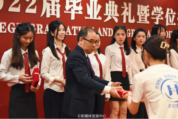 典礼第五项为为2022届毕业生代表颁发毕业证书。
