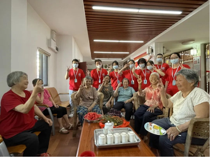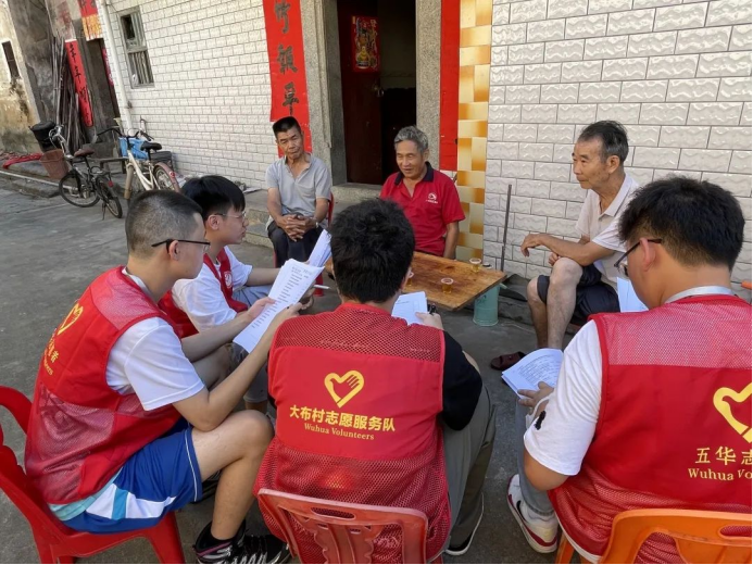 实践团队为了了解当地老人生活情况,融入乡村文化,对大布村村民进行问卷调查、访谈,了解乡村村情、村民健康等基本情况。在进行调研工作同时,实践队员们与乡间老人进行亲密的交流,在当地大学生的带领下,实践队探访百岁老人,倾听老人的生活经历,在本次活动中感受“小羊跪乳,乌鸦反哺”的真切情感。