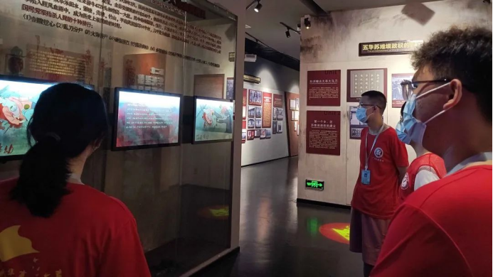 随后,实践队参观了五华县球王李惠堂的雕像,在红色体验馆场馆内参观走访,学习党史,通过该场馆的场景、光影、声像、绘画等传统和现代科技表现手段,使队员更加了解五华县红色历史与五华苏区人民光荣的革命斗争历程。