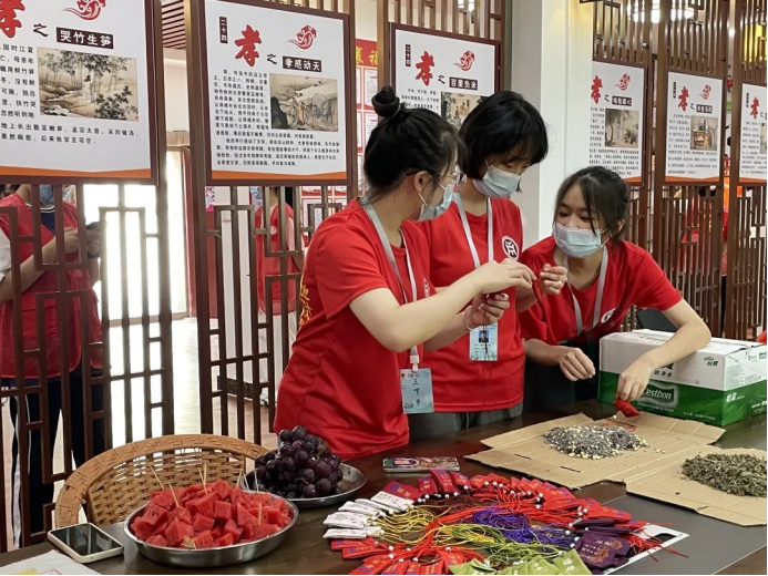 在与老人家交谈期间,队员了解到部分老人有静脉曲张、腰间盘突出等身体健康问题。次日,队员们根据老人身体的实际情况,运用所学中医知识,拿、捏、点按手法进行针对性地按摩,并且实践队员们运用专业知识和优势,制作中药宁神香囊赠送给当地老人。