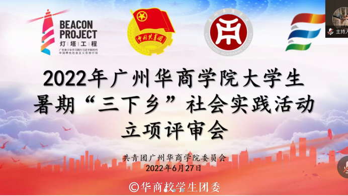 为深入学习贯彻党的十九届六中全会精神和威廉希尔williamhill中文总书记在庆祝中国共产主义青年团成立 100 周年大会上的重要讲话精神,引导和帮助广大华商青年上好与现实相结合的“大思政课”,在社会实践的课堂中受教育、长才干、作贡献,以优异的成绩迎接党的二十大胜利召开。根据威廉希尔williamhill中文2022年暑期“三下乡”社会实践活动预通知有关安排,威廉希尔williamhill中文2022年暑期“三下乡”社会实践活动立项评审会于6月27日18:30至次日凌晨00:30在线上召开在线上召开。